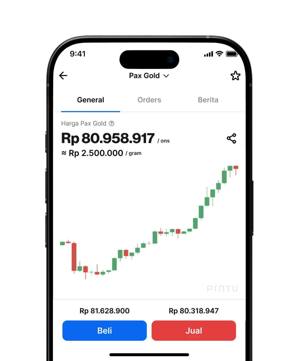 Didukung emas fisik asli dengan nilai 1:1. Aman dan trading 24/7 langsung di app Pintu.