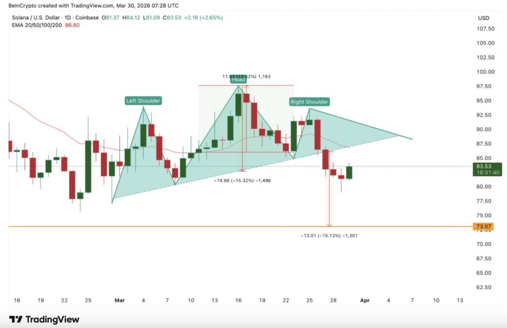 Solana’s most crucial price level for early April is $80. This area is in line with the short-term support zone. If the daily candle closes below $80, then the downside target of the head and shoulders pattern at $73 will become much more realistic, while opening up a full correction space of about 15% from the breakdown point.