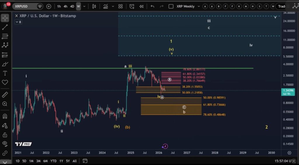 According to technical analysis, XRP has the potential to form an ABC correction structure. In this scenario:
