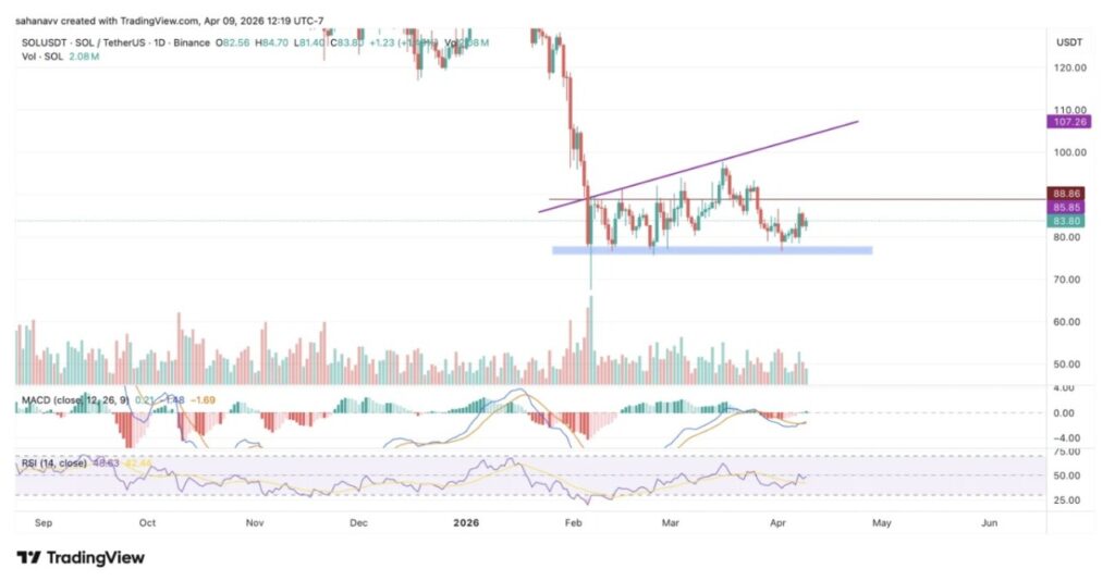 Solana is still able to maintain strong ecosystem activity, although its price action remains volatile. While user metrics are still high, SOL’s price action reflects cyclical momentum rather than a truly consistent uptrend. SOL price has bounced off an important support zone below $80, which is now a strong foundation.