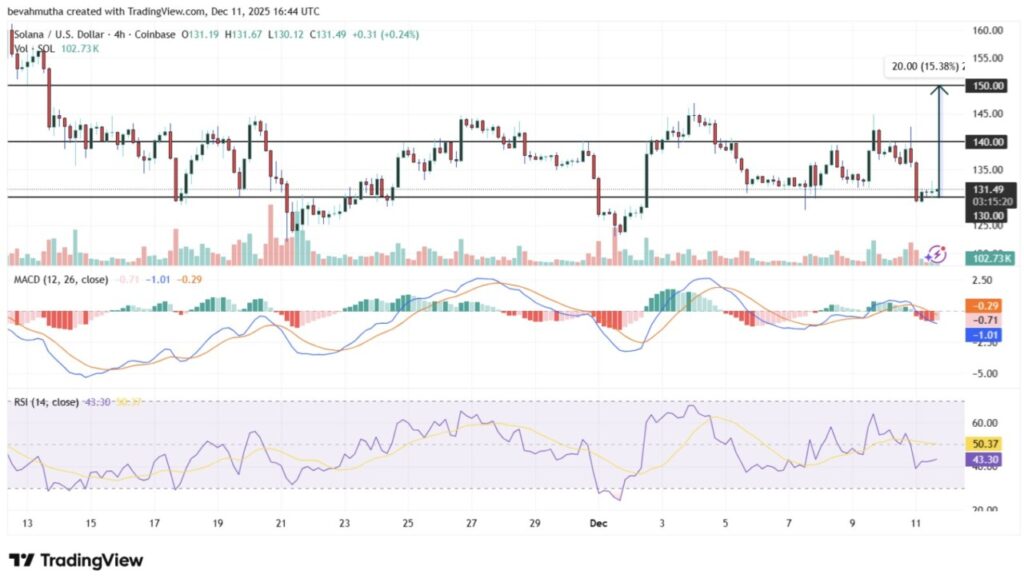 Per 11 Desember, harga SOL berada di angka $130, mencerminkan penurunan tipis sebesar 0,63%.