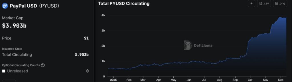 Di tengah tren tersebut, PYUSD juga mencatat ekspansi yang signifikan. Kapitalisasi pasarnya melonjak dari sekitar $500 juta pada awal Januari menjadi rekor tertinggi sekitar $3,9 miliar pada bulan Desember.