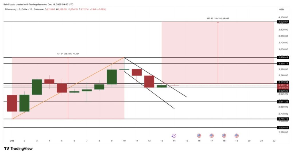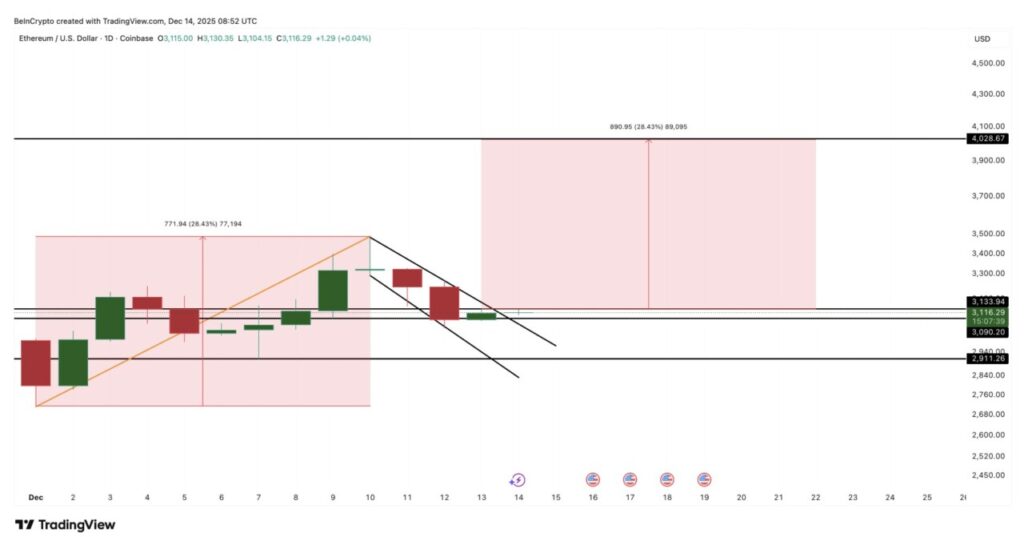 Namun demikian, struktur bullish ini akan mulai melemah jika harga Ethereum turun di bawah $3.090, atau bahkan $2.910. Penutupan harga di bawah $2.910 akan membatalkan pola tersebut sepenuhnya.