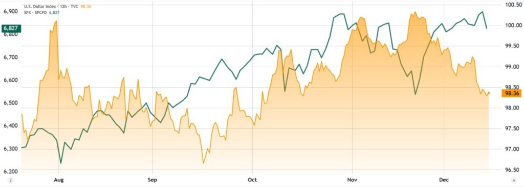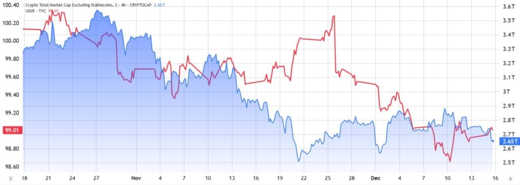 Stabilitas Indeks Dolar AS (DXY) yang menemukan dukungan di level 98 setelah empat minggu berturut-turut menurun, menunjukkan kepercayaan yang lebih tinggi pada kemampuan pemerintah AS untuk menghindari resesi. Namun, ini kurang mendukung pasar kripto.