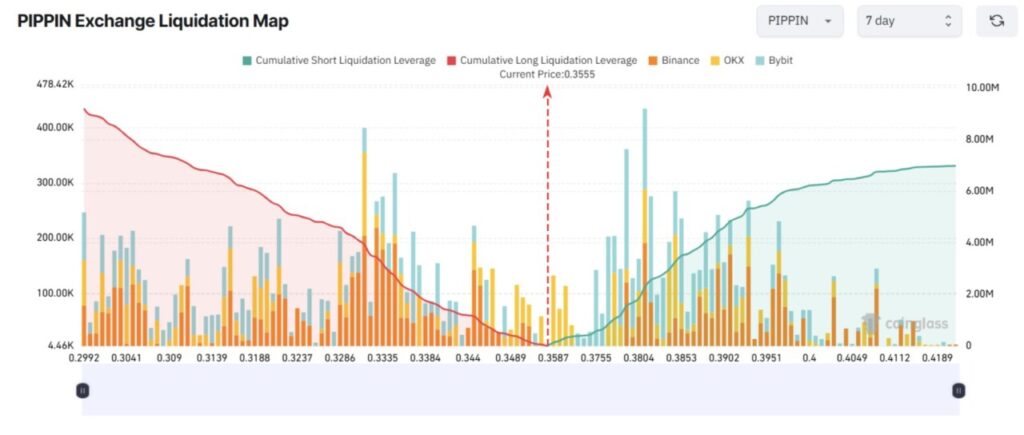 Jika harga PIPPIN turun di bawah $0,30 minggu ini, lebih dari $9 juta posisi long berisiko terkena likuidasi. Jumlah tersebut bisa bertambah besar apabila PIPPIN mengalami penurunan tajam ā seperti yang pernah terjadi pada beberapa token meme lain yang dimanipulasi.