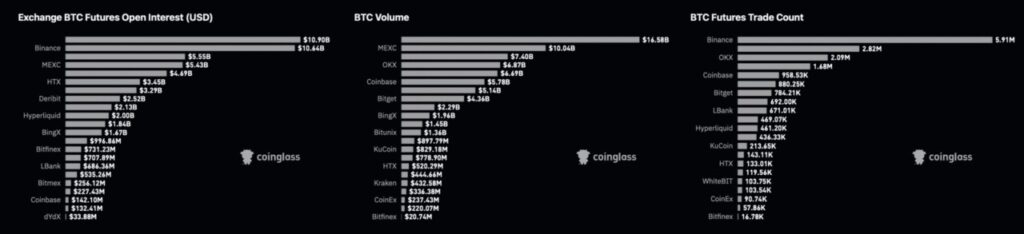 Volume perdagangan Spot telah mencapai puncak baru, dengan total $7 triliun sepanjang tahun ini. Lonjakan ini menegaskan partisipasi investor yang kuat dan menunjukkan perbedaan signifikan dibandingkan dengan Bybit, pesaing terdekat Binance, yang mencatat volume perdagangan Spot hampir lima kali lebih rendah. Pasar Futures perpetu juga menunjukkan pola yang serupa, dengan Binance memimpin dengan volume kumulatif $24,5 triliun.
