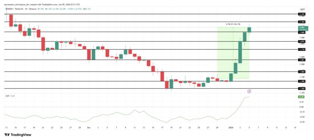 Jika momentum ini terjaga, RENDER berpotensi melanjutkan kenaikan melewati level $2,18 dan $2,34, bahkan menyentuh level tertinggi dua bulan.