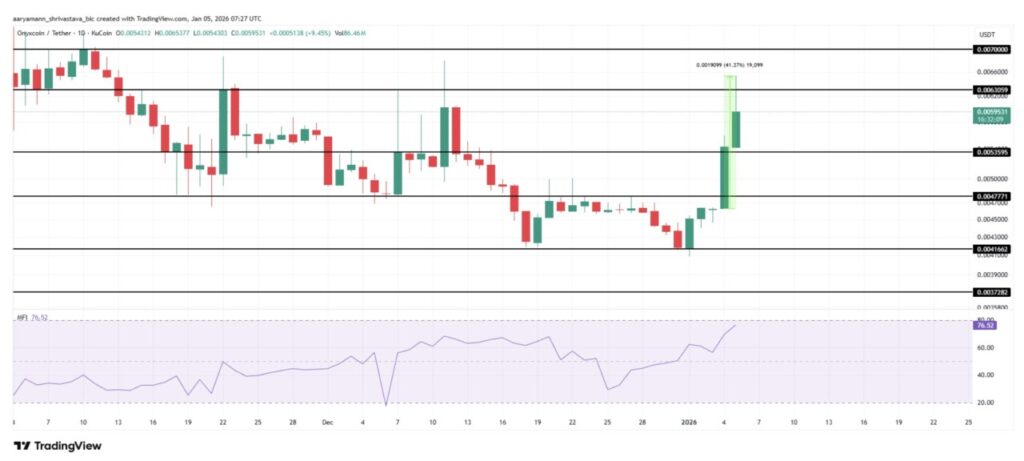 Pada 5 Januari, XCN diperdagangkan di sekitar $0,00595 setelah kembali gagal menembus level $0,00630. Level ini telah ditolak sebanyak tiga kali dalam enam minggu terakhir, menjadikannya zona resistensi yang sangat penting.