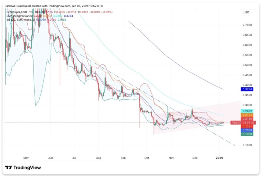 Jakarta, Pintu News – Pada 6 Januari 2026, Pi Network sempat diperdagangkan di harga $0,2121 setelah anjlok 93% dari puncaknya di $2,99 sejak peluncuran Open Network pada Februari 2025.