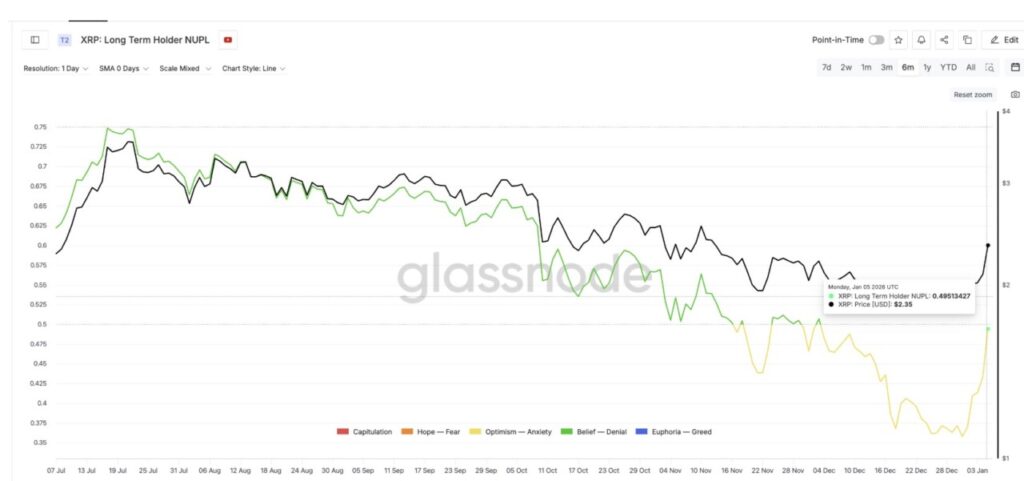 Namun, tekanan untuk mengambil keuntungan juga mulai meningkat. Indikator NUPL (Net Unrealized Profit or Loss) untuk pemegang jangka panjang ā yang mengukur seberapa besar keuntungan belum terealisasi yang mereka miliki ā telah kembali ke level yang terakhir terlihat pada awal Desember.