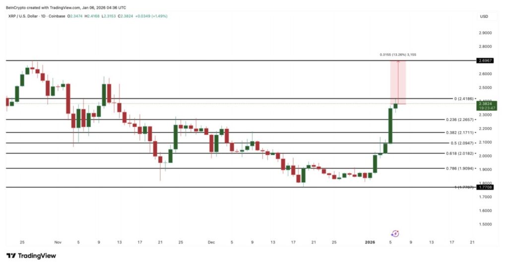 Agar prediksi bullish XRP tetap valid, harga perlu menutup harian dengan bersih di atas $2,41. Jika itu terjadi, tekanan jual dari pemegang sebelumnya akan melemah, dan target kenaikan berikutnya berada di sekitar $2,69 ā yang berarti potensi kenaikan tambahan sekitar 13% dari level saat ini.