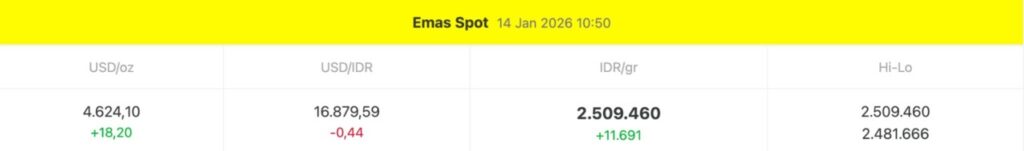 Penguatan harga emas Antam sejalan dengan pergerakan emas spot global yang berada di level USD 4.624,10 per troy ounce. Jika dikonversikan dengan kurs 1 USD = Rp16.708, maka harga emas dunia setara sekitar Rp77,25 juta per troy ounce. Kondisi ini memberikan dukungan kuat bagi harga emas domestik.
