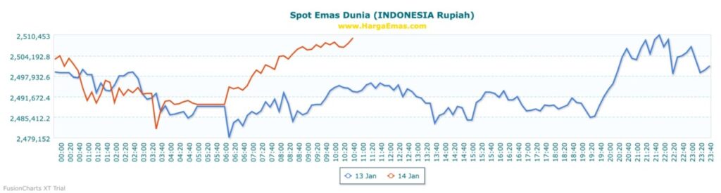 Grafik harga emas Antam hari ini menunjukkan kenaikan yang cukup signifikan dibandingkan hari sebelumnya. Per 14 Januari 2026, harga emas Antam tercatat berada di kisaran Rp2.665.000 per gram, naik dari level sebelumnya yang berada di sekitar Rp2.652.000 per gram. Kenaikan ini mencerminkan sentimen positif pasar terhadap logam mulia.