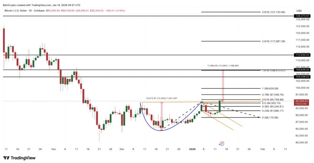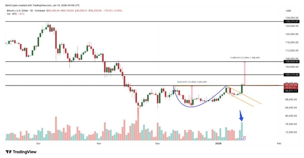 Jakarta, Pintu News – Bitcoin akhirnya menunjukkan kelanjutan pergerakan positif. Harganya telah menembus di atas zona $95.000 dan masih bertahan di level tersebut saat laporan ini dibuat, naik sekitar 3,8% pada 14 Januari dan sekitar 6,5% dalam 30 hari terakhir. Kekuatan ini mulai mengubah sentimen pasar.