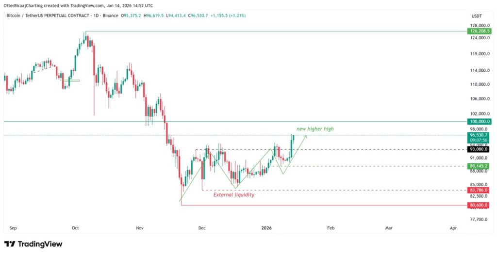 Bitcoin (BTC) berhasil menutup hari dengan harga di atas $95.000, sebuah sinyal yang mengkonfirmasi tren naik dan melemahkan resistensi jangka pendek. Volume pengambil bersih di Binance mencapai lebih dari $500 juta, sebuah fenomena yang bertepatan dengan peningkatan minat terbuka dan tingkat pendanaan per jam terendah sejak Oktober 2025.
