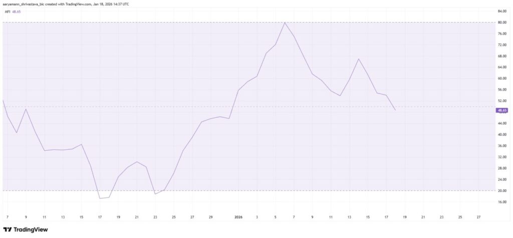 Ketika MFI tetap rendah, ini mencerminkan permintaan yang menurun dan apetit risiko yang berkurang. Kondisi seperti ini sering kali mendahului kelemahan harga yang berkelanjutan, terutama ketika momentum tidak bergeser kembali ke akumulasi. Investor dan analis pasar harus waspada terhadap potensi penurunan lebih lanjut jika situasi ini terus berlanjut.