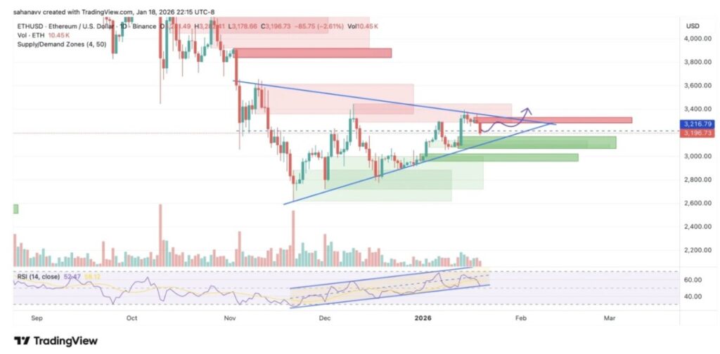 Gambar Harga Ethereum Turun ke $3.199 Hari Ini (19/1/26): Aktivitas Jaringan ETH Malah Meningkat!