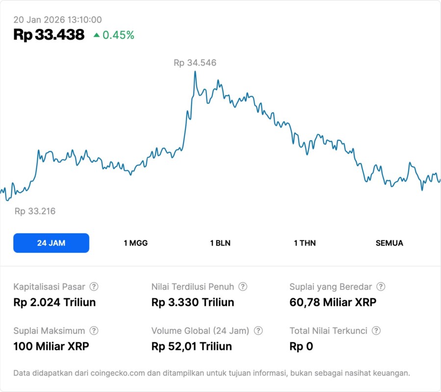 Jakarta, Pintu News – Harga Ripple menunjukkan fase stabilisasi setelah mengalami penurunan tajam yang menembus level US$2, diikuti oleh konsolidasi harga dan dinamika teknikal yang menjadi fokus pelaku pasar crypto dalam menentukan arah pergerakan berikutnya.