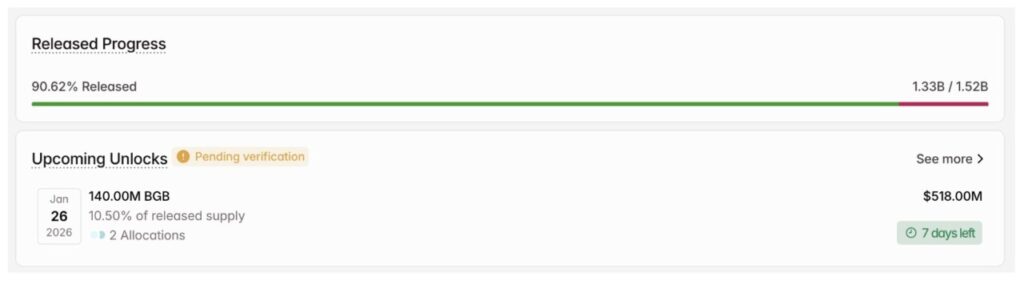 Pada tanggal 26 Januari, tim akan melepaskan 140 juta BGB senilai $518 juta. Jumlah ini setara dengan 10,5% dari total pasokan yang telah beredar.