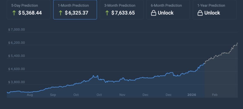 Dalam grafik prediksi, nilai emas diperkirakan mencapai lebih tinggi pada pertengahan hingga akhir Februari 2026, dibandingkan dengan awal bulan, menunjukkan momentum bullish lanjutan. Jika pola ini terwujud, harga bisa menembus kisaran atas proyeksi rata-rata.