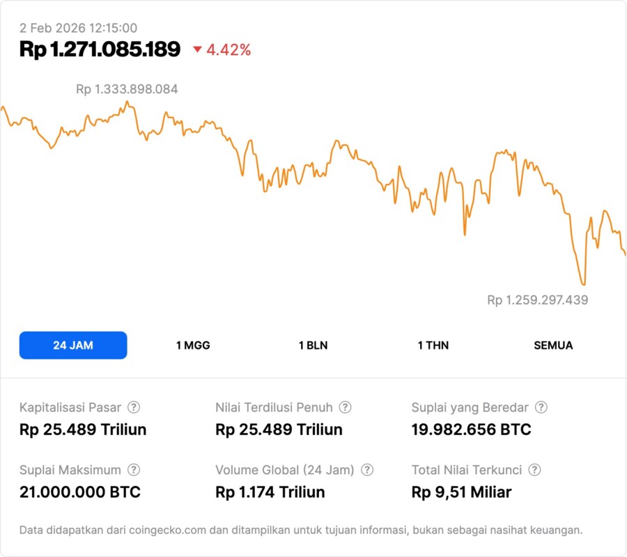 Harga Bitcoin turun hampir 10 % dalam beberapa hari terakhir, mencapai level terendah sekitar USD 78 000, yang menandakan resistensi pasar terhadap kondisi bearish dalam jangka pendek. Penurunan ini secara signifikan melemahkan selera risiko di pasar crypto, sehingga permintaan terhadap aset berisiko seperti altcoin menurun.