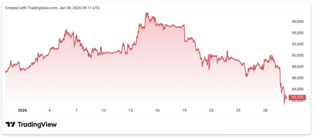Pada akhir Januari 2026, Bitcoin sempat diperdagangkan di level $82.078, turun 6,9% dalam sehari dan 7,1% dalam sebulan terakhir, menurut data pasar. Penurunan ini menempatkan Bitcoin sekitar 35% di bawah rekor tertingginya yang melebihi $126.000 pada Oktober lalu. Kondisi ini mencerminkan penurunan minat terhadap aset berisiko dan berkurangnya aktivitas spekulatif di pasar aset digital.