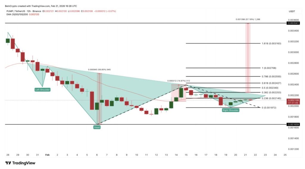 Alasan di balik perilaku ini mungkin terletak pada grafik harga. PUMP saat ini sedang membentuk pola inverse head-and-shoulders pada grafik 12 jam. Ini merupakan struktur pembalikan bullish yang muncul ketika tekanan jual mulai mereda dan pembeli mulai mengambil alih kendali.