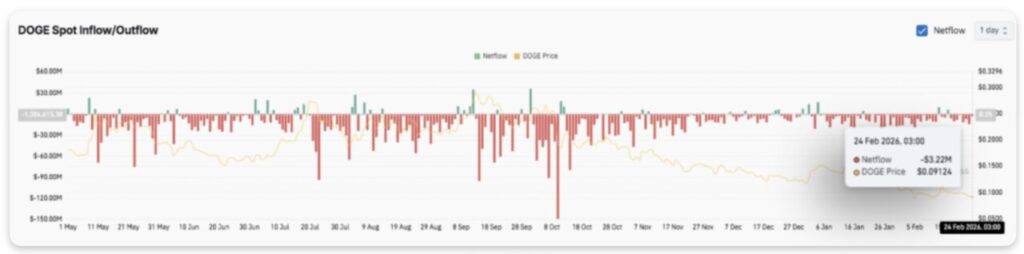 Namun, upaya arus masuk (inflow) baru-baru ini terpantau hanya berlangsung singkat dan terbatas. Netflow saat ini berada di kisaran negatif $3,22 juta. Oleh karena itu, pihak penjual terlihat terus mentransfer token ke bursa sementara DOGE diperdagangkan di sekitar $0,091.