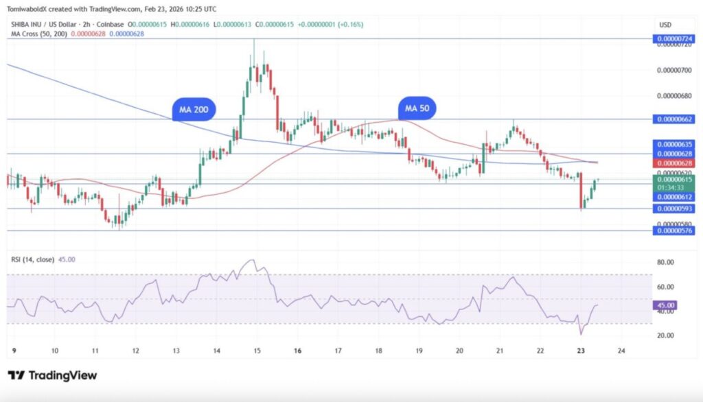 Dilansir dari Coinpedia, saat ini, SHIB diperdagangkan sedikit di bawah level $0,0000060 setelah merosot ke bawah beberapa rata-rata pergerakan (moving average) jangka pendek. Pada tanggal 23 Februari, simple moving average (SMA) periode 200 memotong ke atas rata-rata pergerakan periode 50 pada grafik 2 jam.