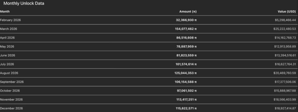 Di sisi lain, data token unlock bulanan menunjukkan masih ada sekitar 32,36 juta token PI yang akan terbuka sepanjang Februari, lalu disusul tambahan sekitar 154,07 juta token PI pada Maret. Laju unlock yang konsisten ini dapat menghambat upaya pemulihan harga Pi Network karena pasokan token terus bertambah.