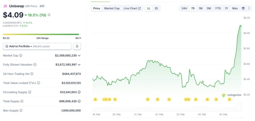 Uniswap melonjak setelah BlackRock membeli UNI dan mengintegrasikan dana ter-tokenisasi