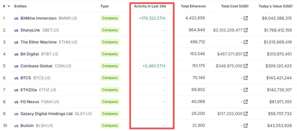 Di tengah pelemahan harga, beberapa institusi justru meningkatkan kepemilikan Ethereum (ETH). BitMine Immersion dilaporkan menambah lebih dari 170.000 ETH, sementara Coinbase juga menambah lebih dari 2.000 ETH ke cadangannya. Langkah ini menunjukkan kepercayaan jangka panjang terhadap fundamental jaringan Ethereum.