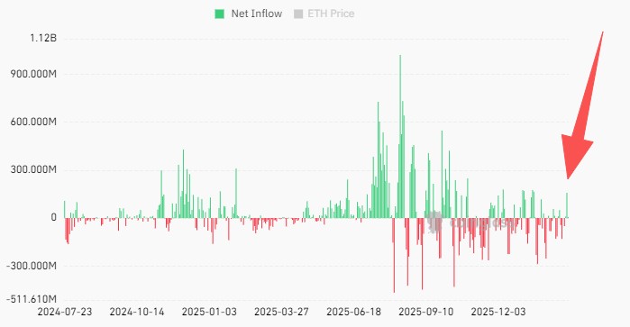 Perkembangan penting lainnya datang dari arus dana ETF spot Ethereum di Amerika Serikat. Setelah sebelumnya mengalami net outflow, kini aliran dana mulai mencatat net inflow. Perubahan ini membantu menopang harga di sekitar level US$1.800 atau Rp30,2 juta.