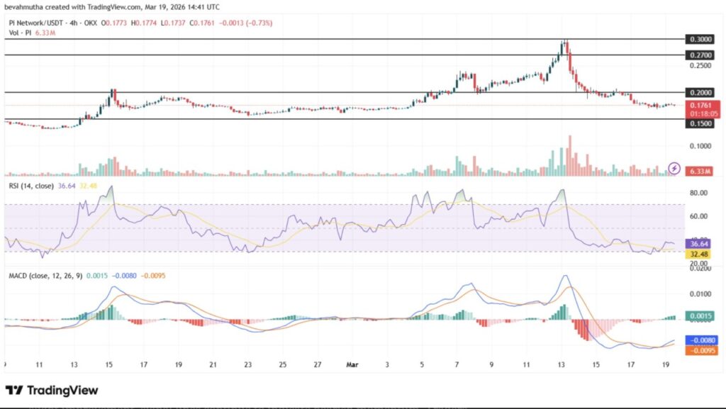 Sementara itu, pada sisi atas, resistance terdekat terlihat di sekitar $0.20. Jika harga mampu bergerak stabil di atas level tersebut, peluang kenaikan menuju $0.23 bisa terbuka sesuai proyeksi jangka menengah PI.