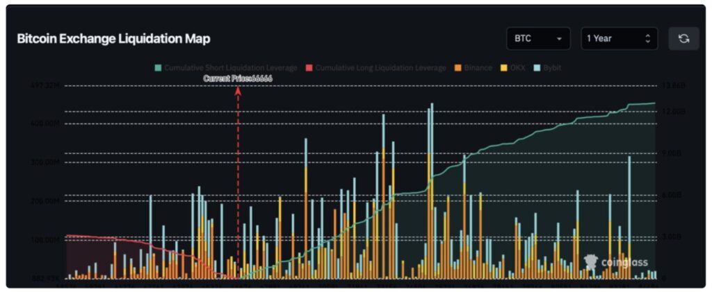 Data likuidasi terbaru menunjukkan adanya ketimpangan besar di pasar derivatif. Saat ini, terdapat akumulasi posisi short senilai lebih dari $12 miliar di atas harga Bitcoin saat ini, sedangkan potensi likuidasi long di bawah harga hanya berada di kisaran $3 miliar.