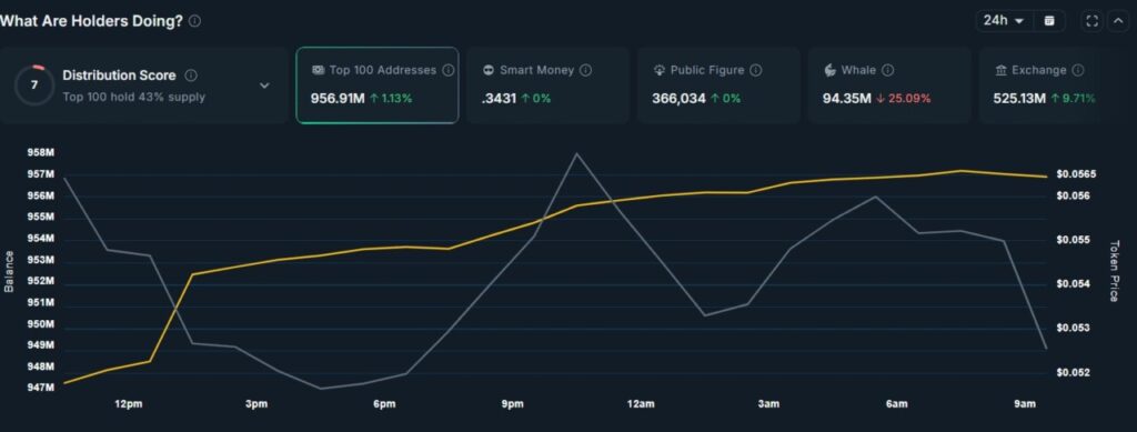 Selain itu, volume perdagangan juga turun sekitar 18% menjadi $40,2 juta, mencerminkan melemahnya minat pasar. Penurunan likuiditas ini sering kali menjadi sinyal awal dari tren bearish yang lebih luas. Dalam konteks crypto, pergerakan whale sering menjadi indikator penting arah pasar.