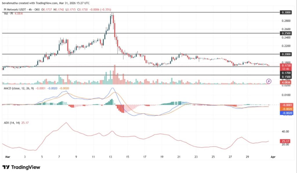 Harga koin PI diperdagangkan di level $0,1724 pada Selasa, setelah turun hampir 0,7% dalam empat jam terakhir. Token ini masih berada dalam tekanan yang cukup jelas, dengan penjual tetap menguasai pergerakan di sekitar level resistance jangka pendek.