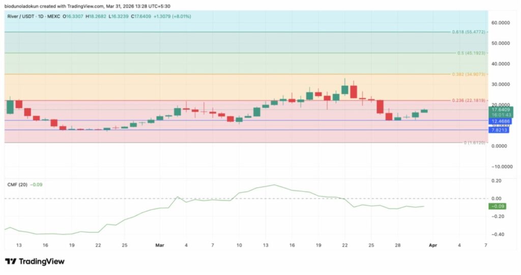 Dalam skenario tersebut, RIVER bisa kehilangan sebagian kenaikan terbarunya dan turun ke level $12,46. Jika gagal mempertahankan area harga tersebut sebagai support, token ini berisiko melanjutkan pelemahan ke $7,82 sepanjang April. Sebaliknya, jika permintaan baru kembali masuk ke pasar, RIVER dapat memperoleh tenaga tambahan dan melanjutkan kenaikannya hingga mencapai $22,18.