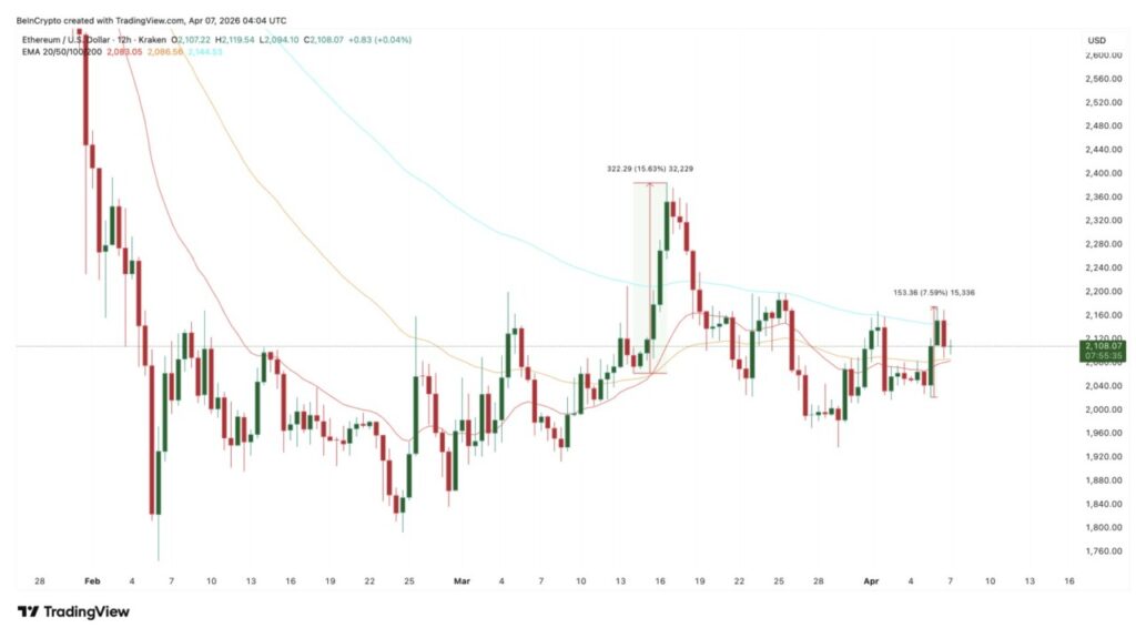 Jakarta, Pintu News – Harga Ethereum berada di level $2,108 pada grafik 12 jam per 7 April, melemah sekitar 1%. Secara sekilas, pergerakan ini terlihat biasa saja dan belum menunjukkan perubahan besar. Meski begitu, ada empat metrik berbeda dari sisi teknikal, derivatif, dan on-chain yang mulai mengarah pada kesimpulan yang sama, dan tidak satu pun mengindikasikan pelemahan lebih lanjut.