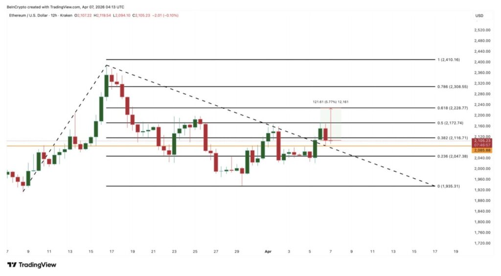 Agar pantulan ini benar-benar menunjukkan kekuatan yang meyakinkan, Ethereum perlu bergerak menuju $2,228 pada level 0.618, atau sekitar 5.77% di atas harga saat ini. Penutupan di atas $2,228 akan mengonfirmasi bahwa keempat metrik yang sebelumnya mengarah pada potensi kenaikan benar-benar berhasil diterjemahkan menjadi perubahan tren yang nyata, bukan sekadar rebound sementara yang kembali gagal.