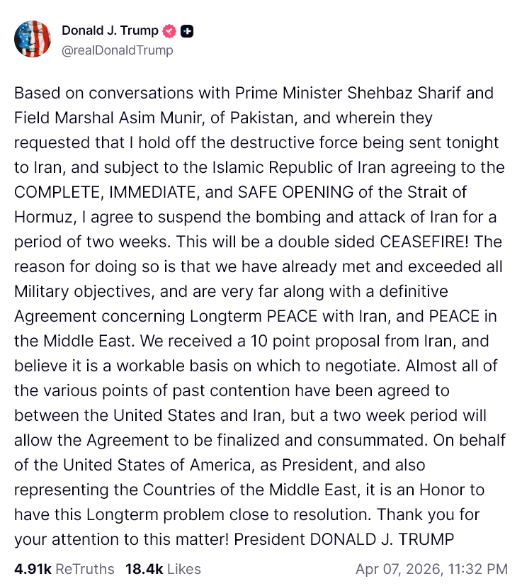 Langkah ini diambil setelah Trump mengumumkan jeda dua minggu terhadap aksi militer, usai berdiskusi langsung dengan Perdana Menteri Pakistan dan Kepala Staf Angkatan Darat Pakistan, Asim Munir. Pengumuman ini langsung meredakan ketegangan geopolitik yang sebelumnya membuat pasar keuangan global, termasuk aset kripto, berada dalam tekanan.
