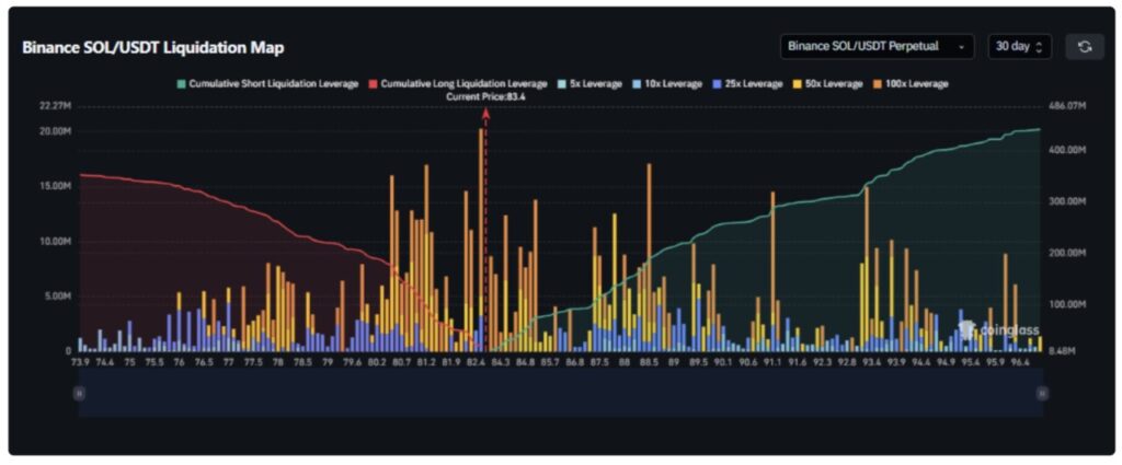 Di level sekitar $83,40, harga Solana berada pada area yang kerap disebut oleh pelaku pasar sebagai āzona netralā. Namun pada kenyataannya, kondisi ini lebih menyerupai medan pertempuran yang tengah menunggu pemicu. Adapun faktor pemicunya adalah ratusan juta dolar dalam posisi leverage yang berpotensi terlikuidasi sewaktu-waktu.