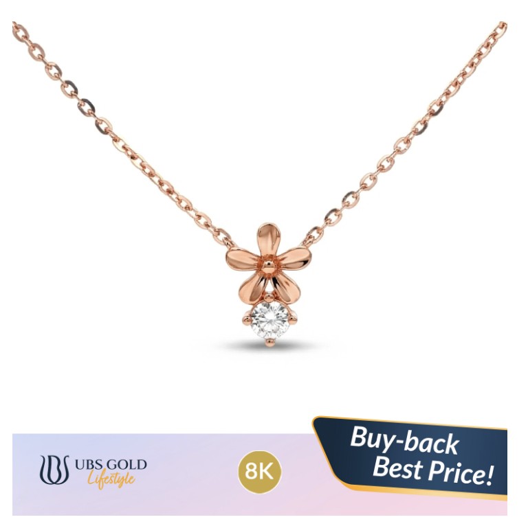 Harga kalung emas “Model Bunga KSK1325K” pada laman UBS Lifestyle dibanderol sekitar Rp2.409.000. Berdasarkan informasi, produk ini menggunakan material rose gold serta memiliki kadar emas 8 karat dengan berat sekitar 1,73 gram.