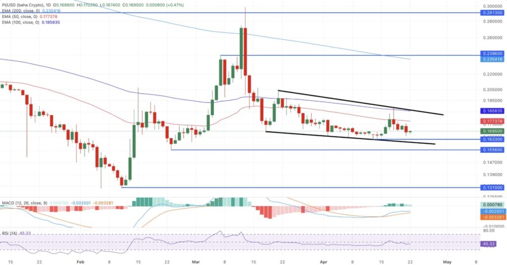 Jakarta, Pintu News ā Pi Network (PI) diperdagangkan di sekitar $0,1700 pada saat berita ini ditulis di hari Rabu, mencerminkan penarikan kembali (retracement) yang lebih luas di dalam pola saluran menurun (falling channel). Peluncuran smart contract di Pi Testnet dengan model berlangganan menandai ekspansi yang berfokus pada fungsionalitas melalui peningkatan protokol yang konsisten.