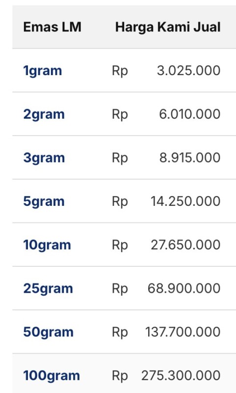 Jadi, harga emas 26 gram Antam hari ini adalah Rp71.925.000